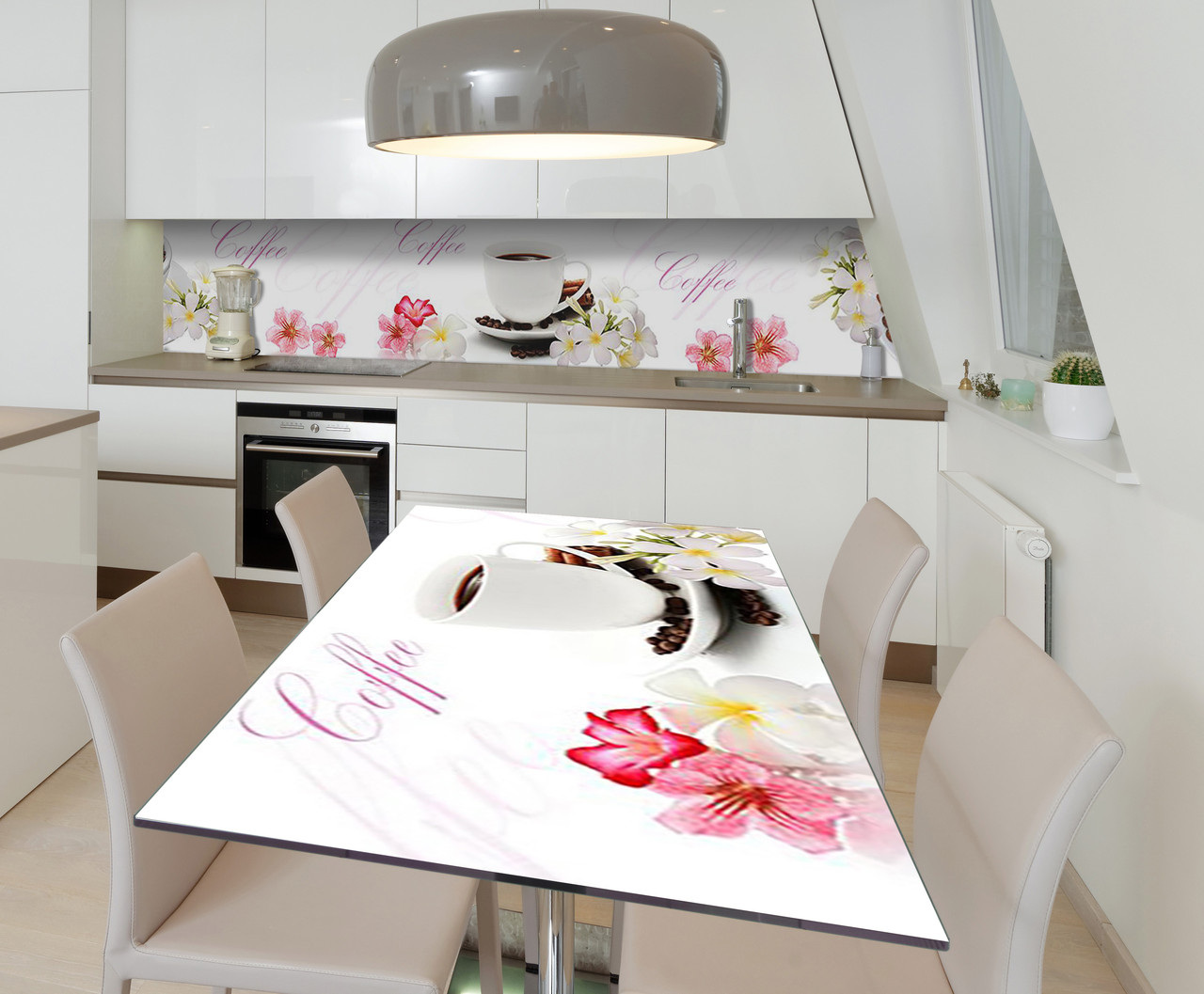 Наклейка вінілова на стіл Zatarga "Чашка Кави та Квіти" 650х1200 мм Z181738/1st