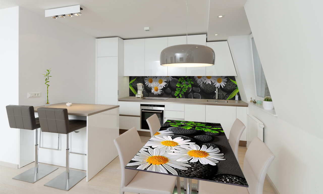 Опис Наклейка вінілова на стіл Zatarga «Ромашки та чорні Камені» 650х1200 мм Z180751/1st