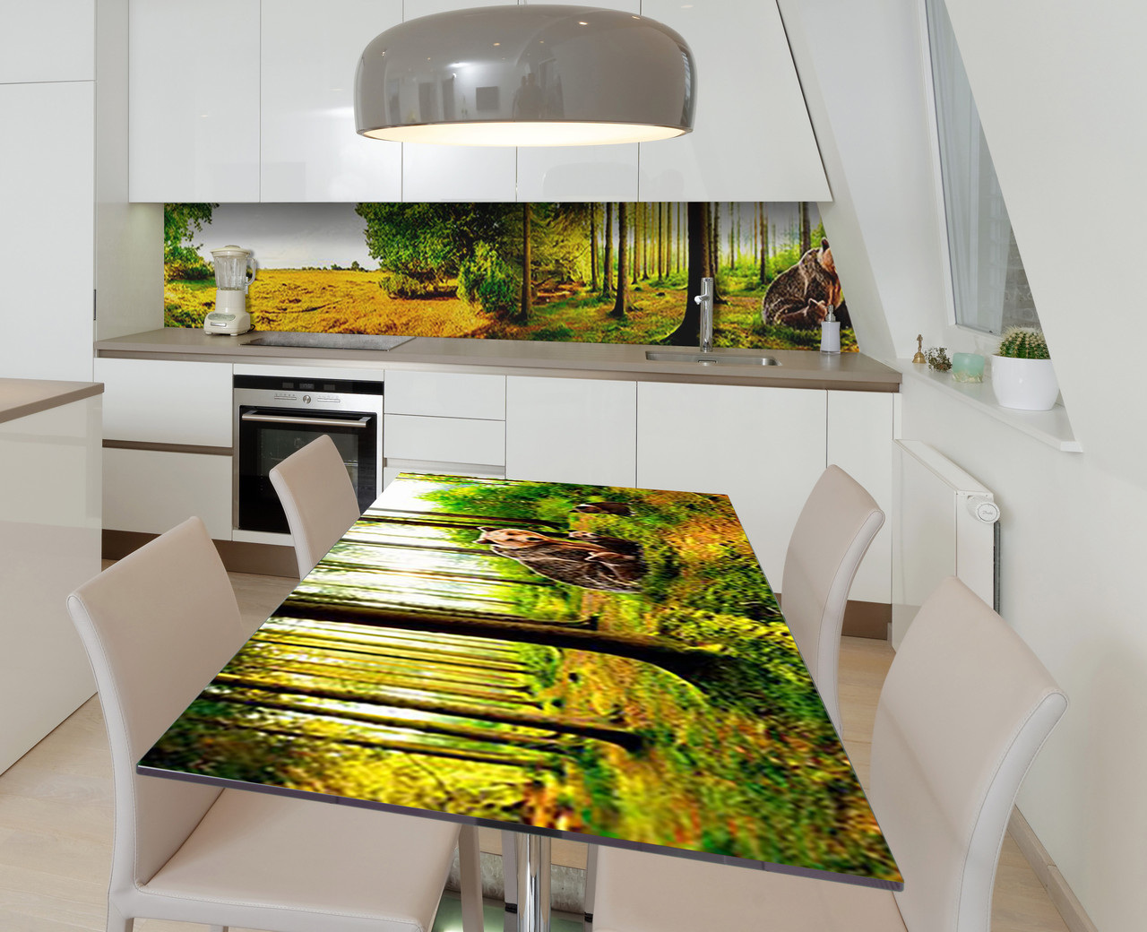 Опис Наклейка 3Д вінілова на стіл Zatarga «Ведмедики у лісі» 600х1200 мм для будинків, квартир, столів, кав'ярень, кафе