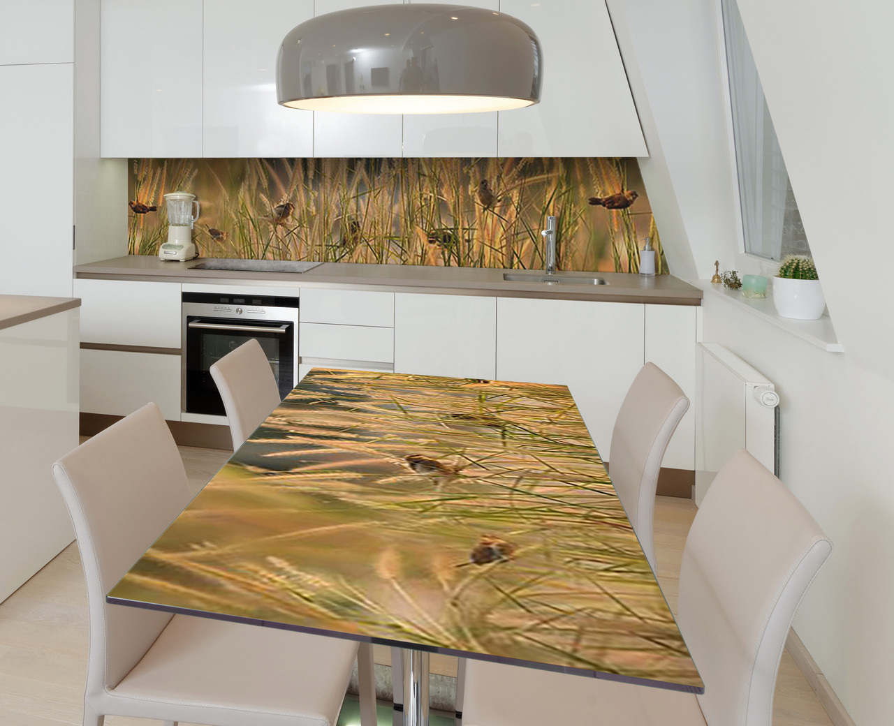 Характеристики товару Наклейка 3Д вінілова на стіл Zatarga «Пташки в очеретах» 600х1200 мм для будинків, квартир, столів, кав'ярень, кафе