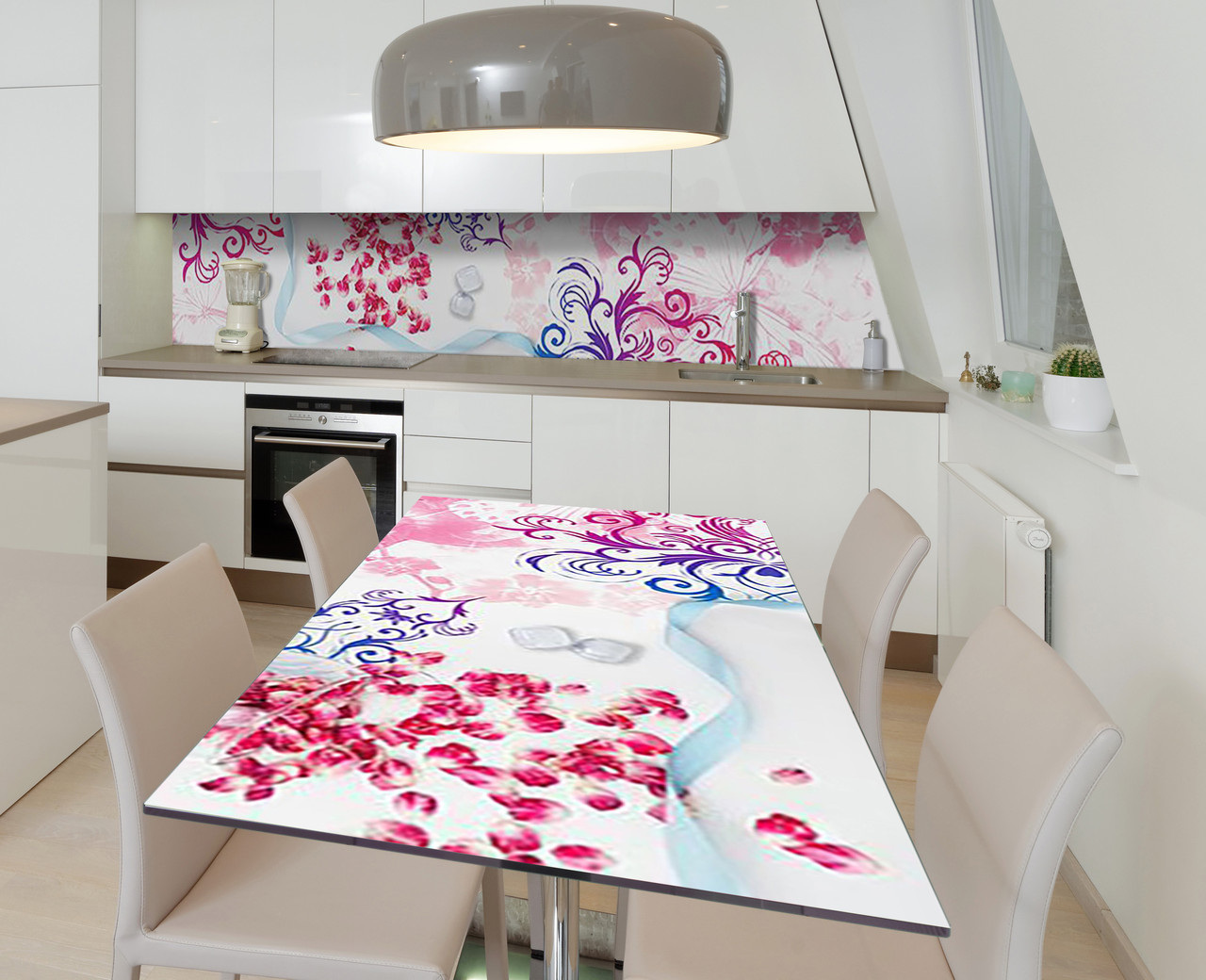 Опис Наклейка 3Д вінілова на стіл Zatarga «Пелюстки та лід» 650х1200 мм для будинків, квартир, столів, кав'ярень, кафе