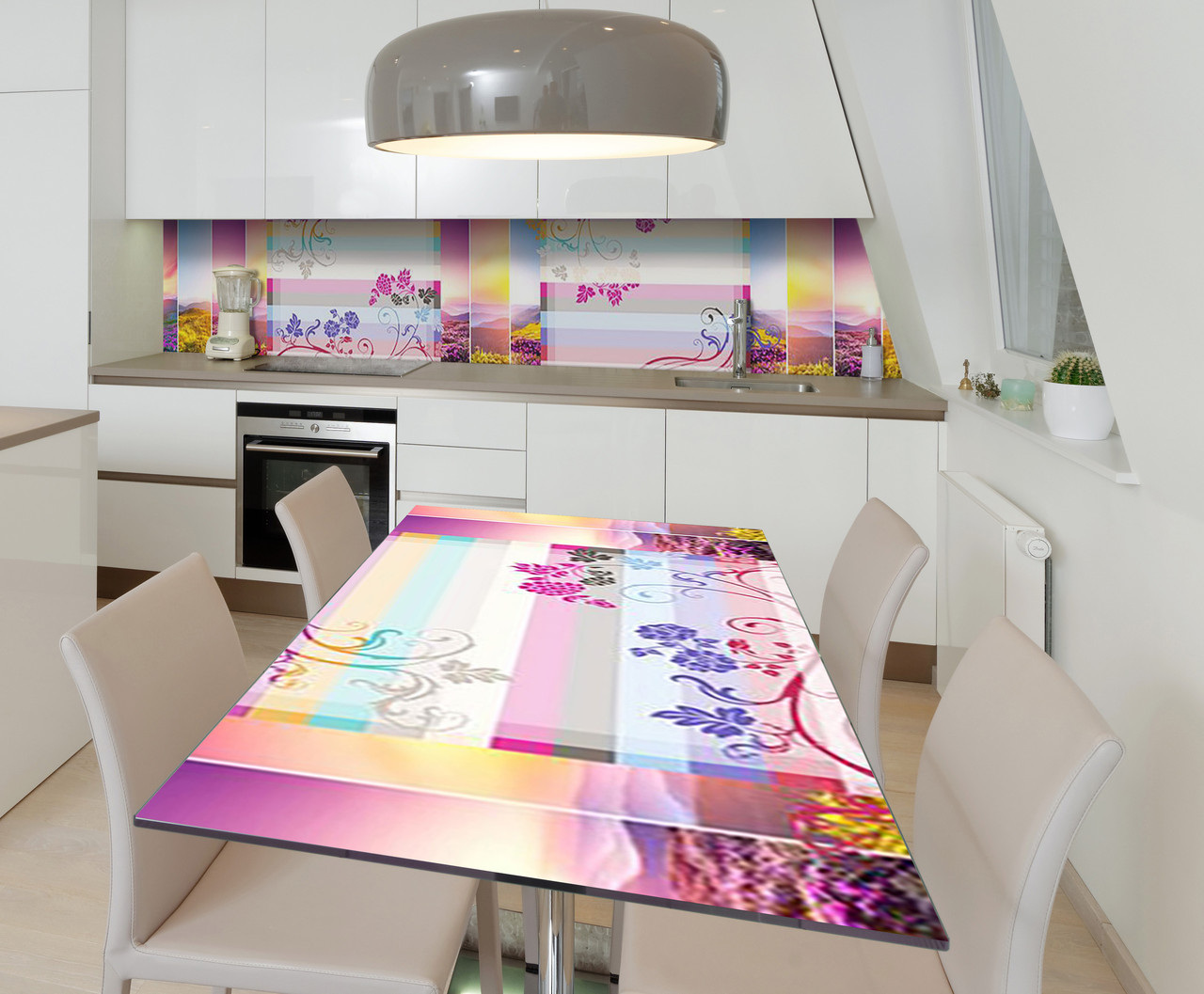 Опис Наклейка 3Д вінілова на стіл Zatarga «Райдужний Прованс» 600х1200 мм для будинків, квартир, столів, кав'ярень.
