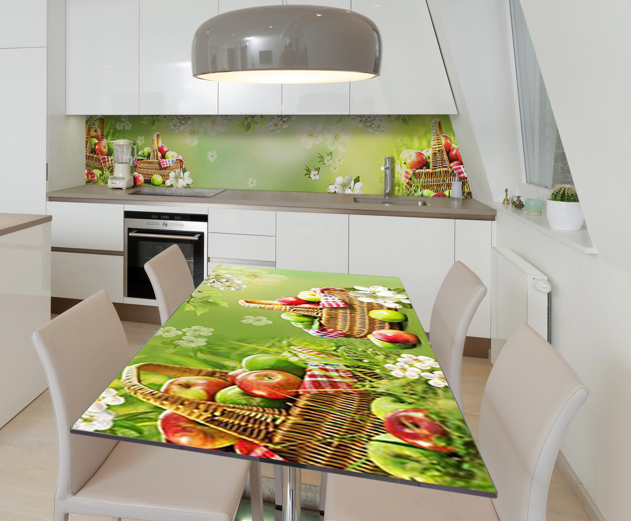Опис Наклейка 3Д вінілова на стіл Zatarga «Яблучний пікнік» 650х1200 мм для будинків, квартир, столів, кав'ярень
