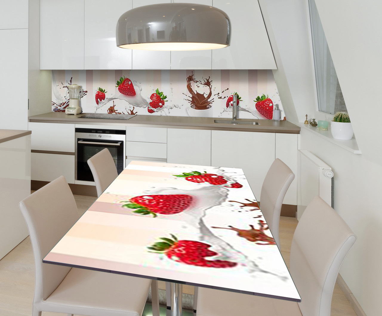 Опис Наклейка 3Д вінілова на стіл Zatarga «Полуниця з молоком» 600х1200 мм для будинків, квартир, столів, кав'ярень,