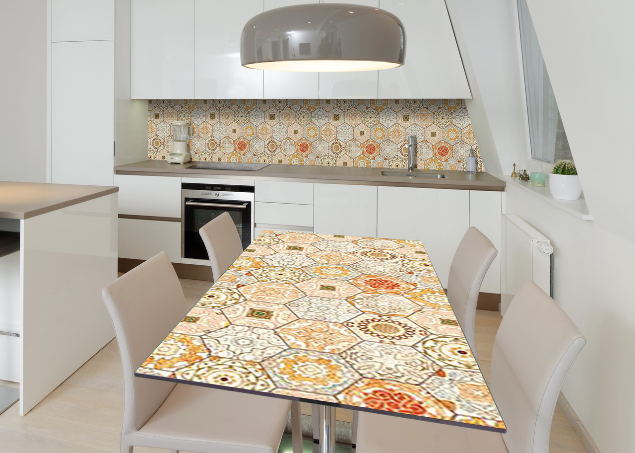 Наклейка 3Д вінілова на стіл Zatarga «Охрова азулежу» 600х1200 мм для будинків, квартир, столів, кав'ярень.