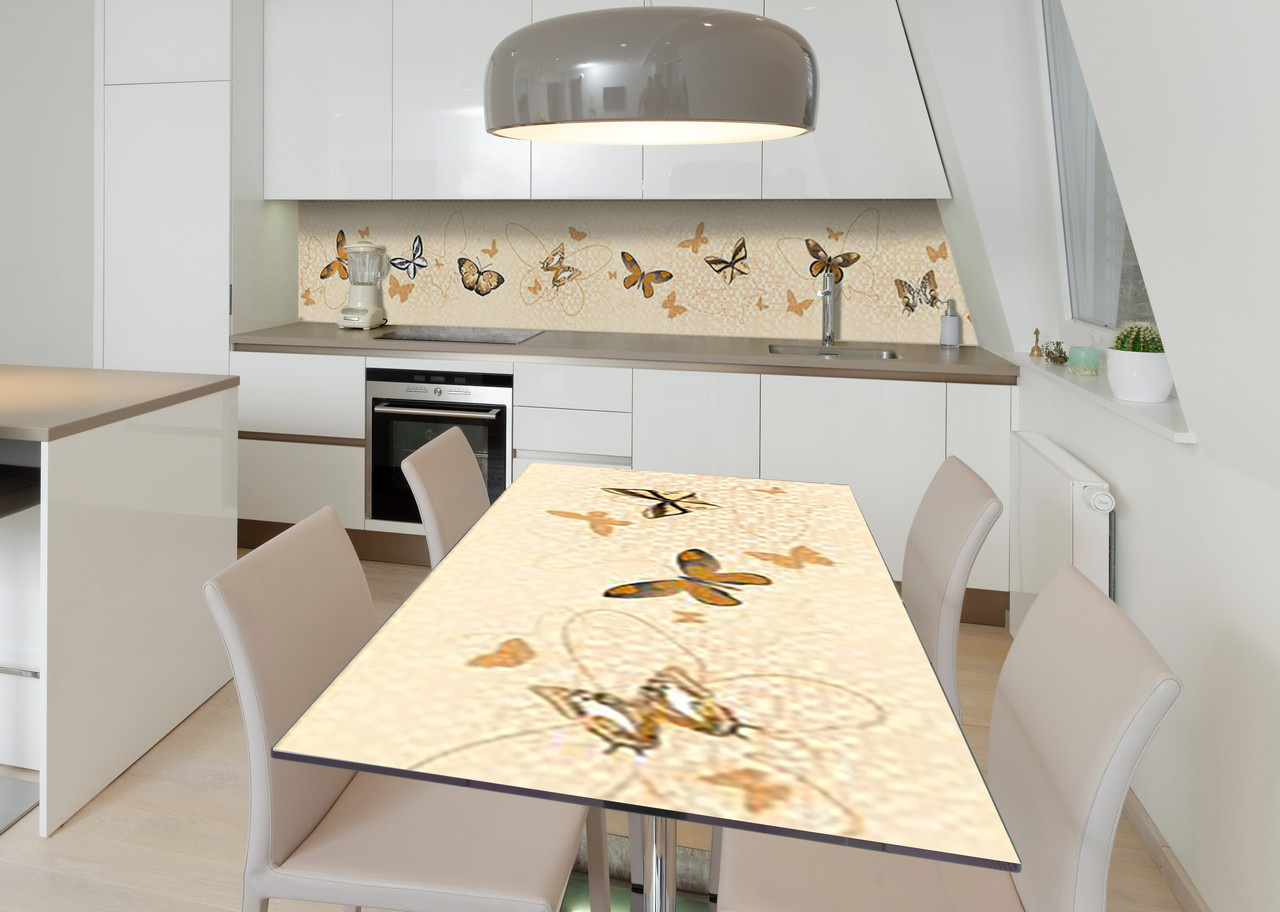 Опис Наклейка 3Д вінілова на стіл Zatarga «Метелики в охрі» 650х1200 мм для будинків, квартир, столів, кав'ярень, кафе
