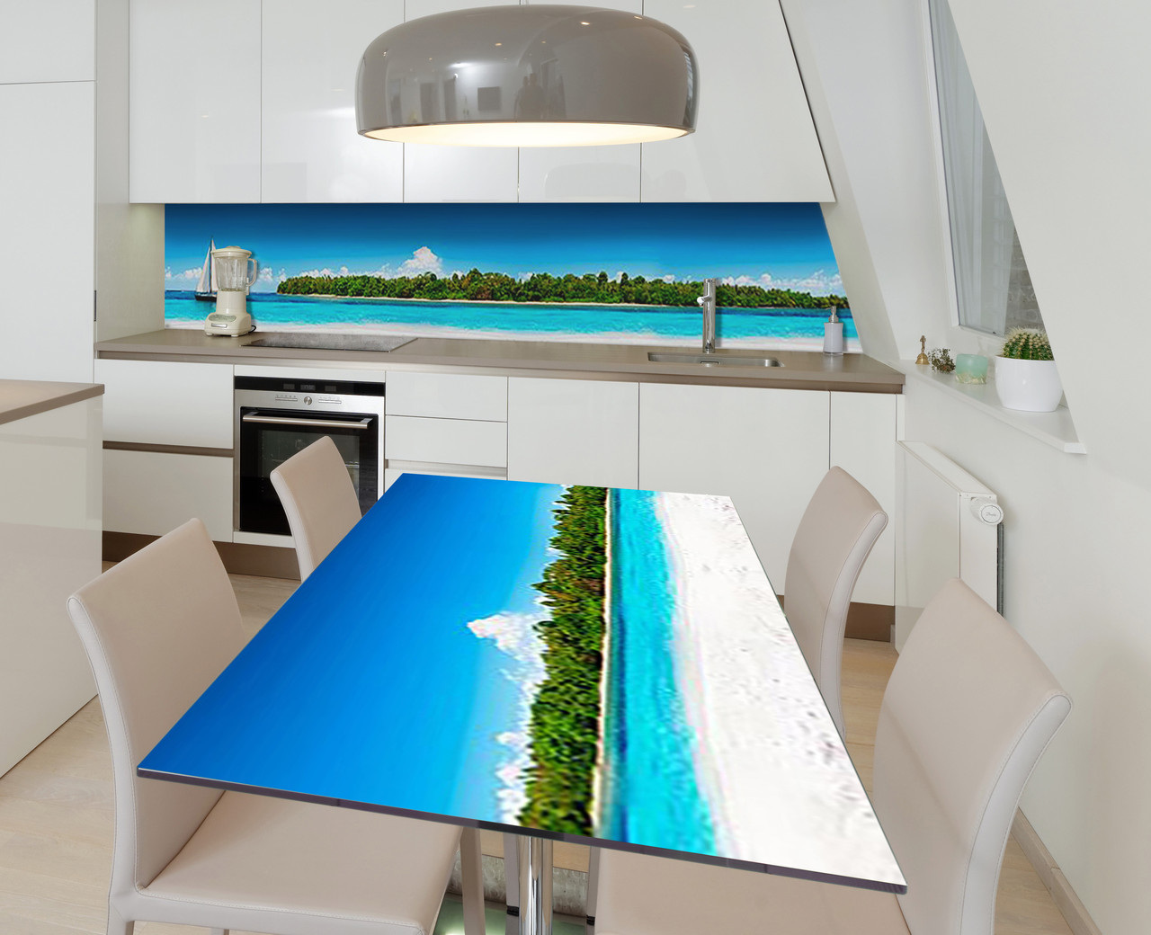 Характеристики товару Наклейка 3Д вінілова на стіл Zatarga «Райська лагуна» 650х1200 мм для будинків, квартир, столів, кав'ярень