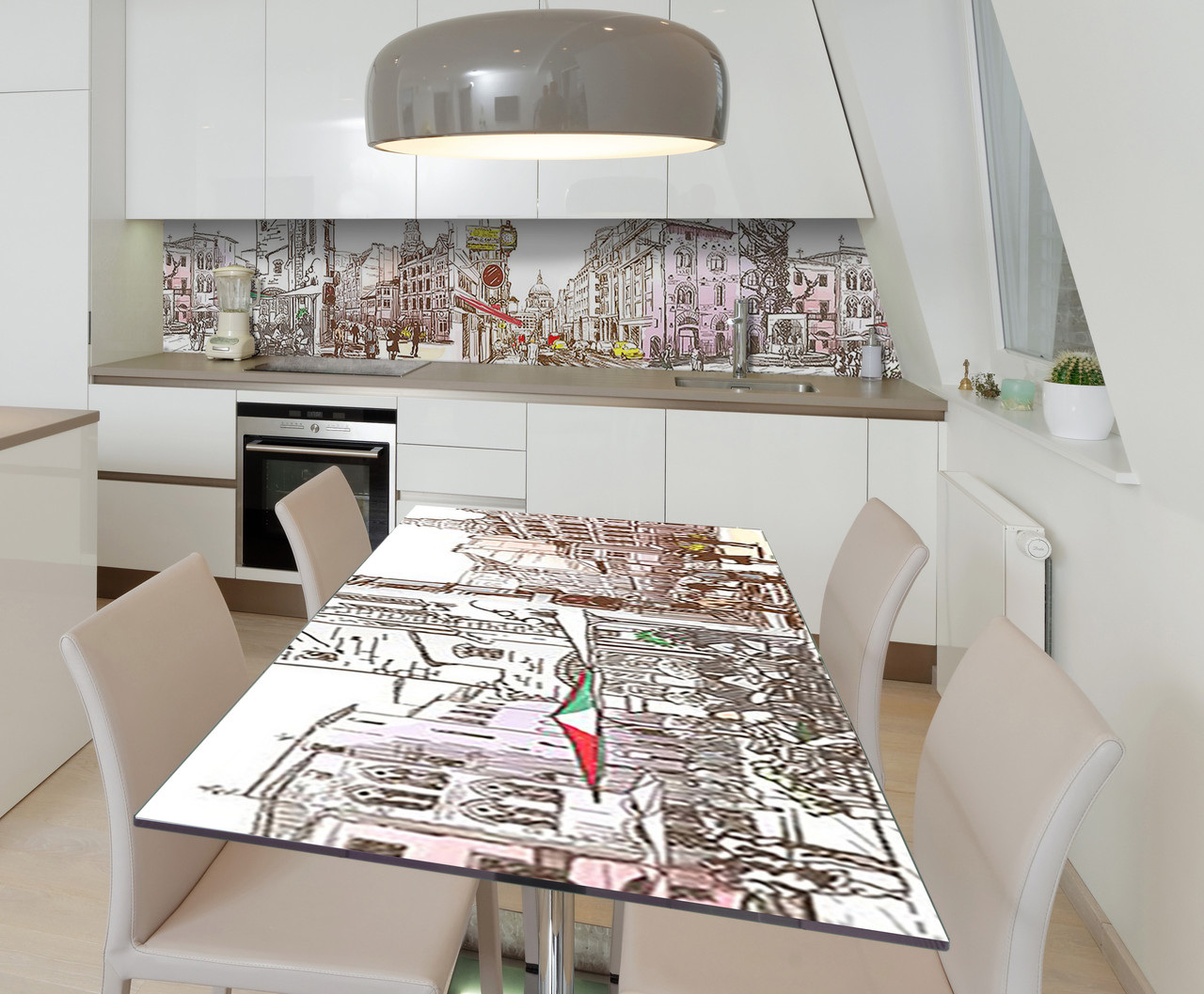 Опис Наклейка 3Д вінілова на стіл Zatarga «Ранок у Мілані» 600х1200 мм для будинків, квартир, столів, кав'ярень, кафе