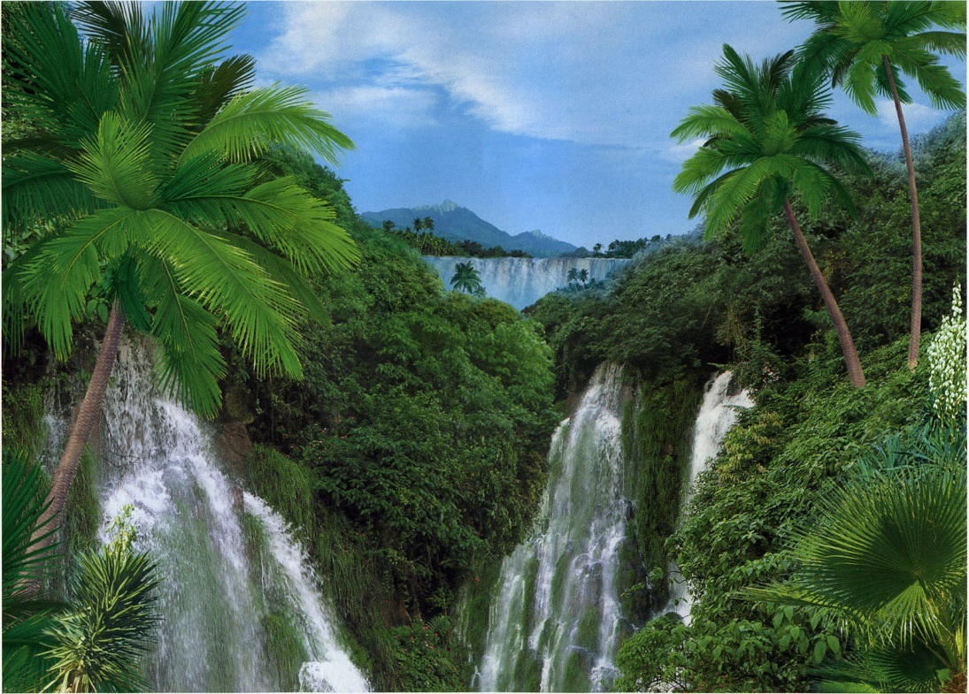 Безліч прекрасних водоспадів утворюють природний каскад серед спекотних, тропічних лісів. Фотошпалери Арт Декор Каскад гармонійно, стильно та ефектно виглядають в інтер'єрі заміського будинку, міської квартири, офісу. Тропічний мікроклімат освіжить розпалену кімнату влітку і зігріє при аномальних холодах. Фотошпалери 3Д оживлять водоспади, ліси, передають звуки таємничої природи, створюють затишок, наповнюють будинок новими ідеями, теплими спогадами, знімають стреси та нервозність.