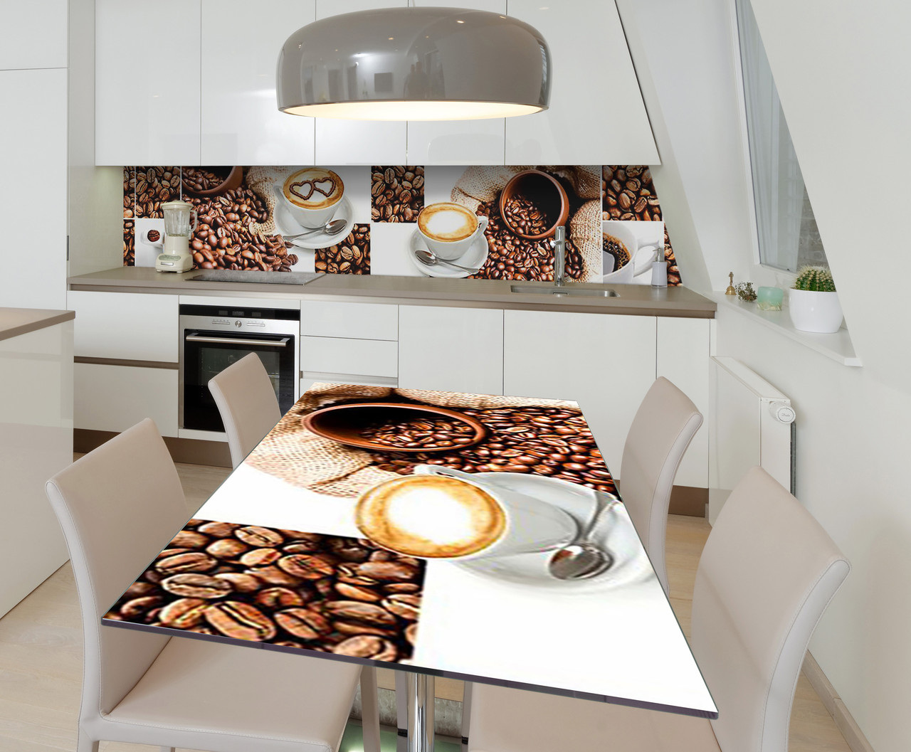 Наклейка 3Д вінілова на стіл Zatarga «Кавова парочка» 600х1200 мм для будинків, квартир, столів, кав'ярень.
