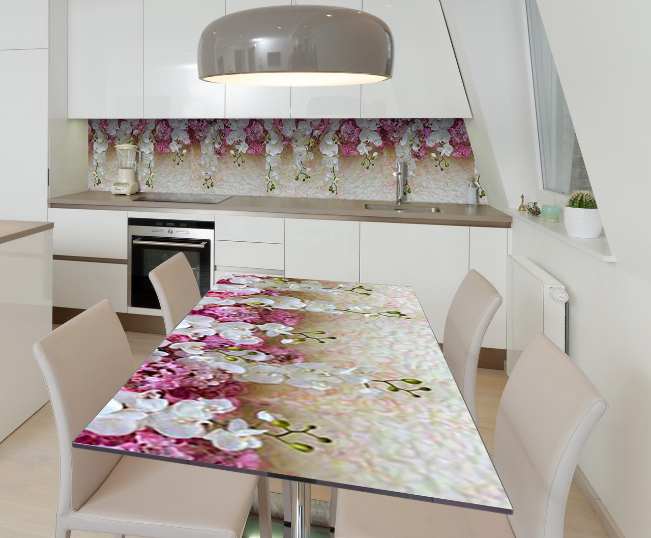 Характеристики товару Наклейка 3Д вінілова на стіл Zatarga «Дощ орхідей» 600х1200 мм для будинків, квартир, столів, кав'ярень, кафе