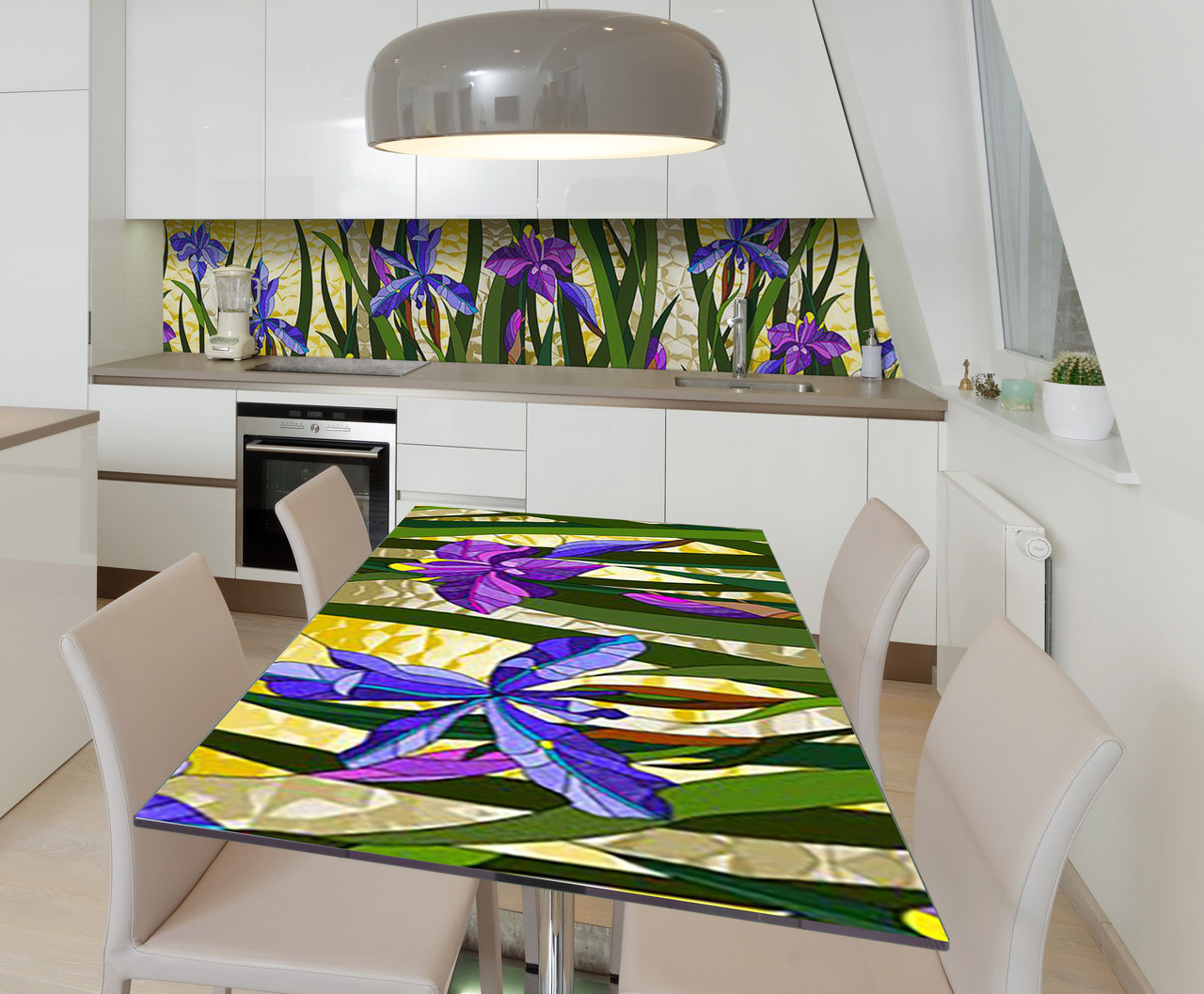 Наклейка 3Д вінілова на стіл Zatarga «Квіткові вітражі» 650х1200 мм для будинків, квартир, столів, кав'ярень.