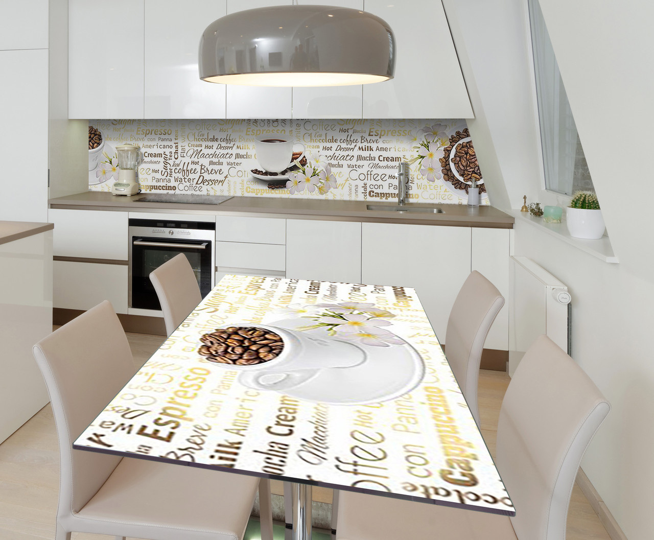 Опис Наклейка 3Д вінілова на стіл Zatarga «Кавове меню» 600х1200 мм для будинків, квартир, столів, кав'ярень, кафе