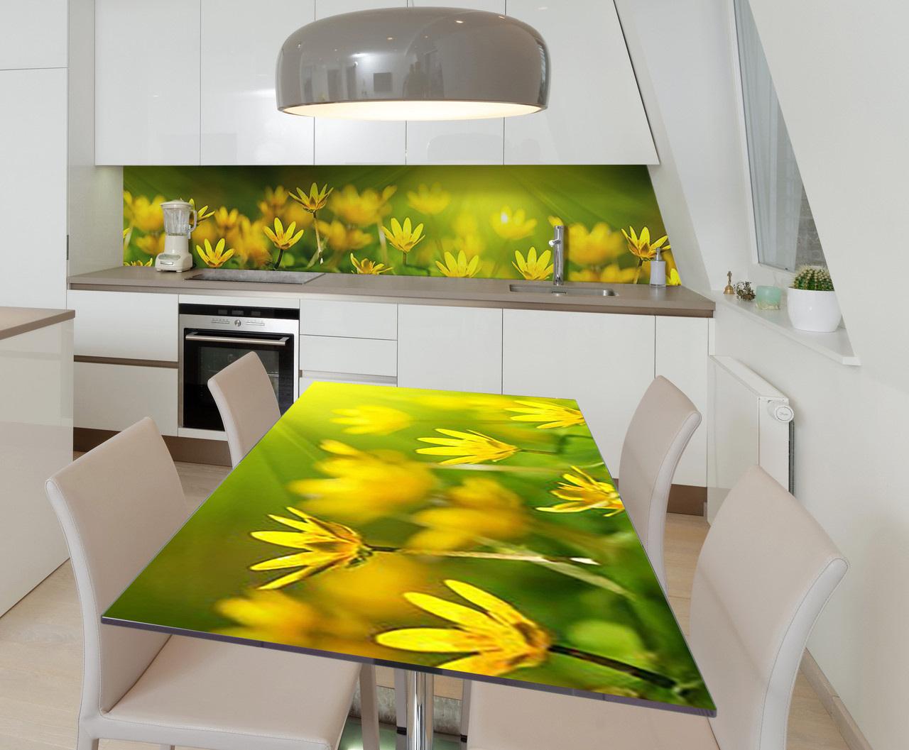 Наклейка 3Д вінілова на стіл Zatarga «Ранок на лузі» 600х1200 мм для будинків, квартир, столів, кав'ярень, кафе