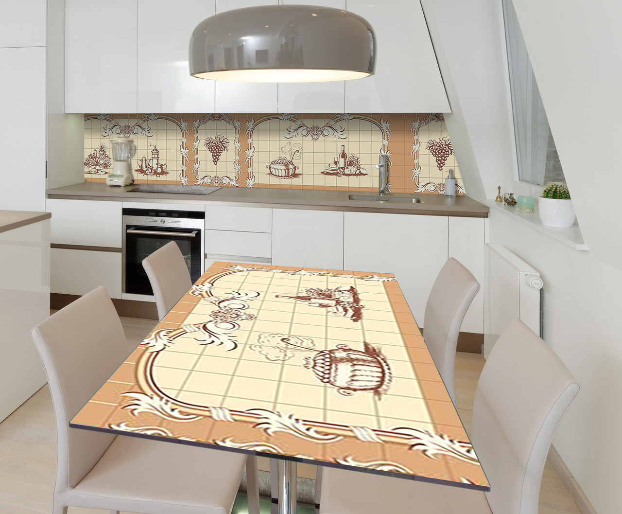 Наклейка 3Д вінілова на стіл Zatarga «Кухонні віньєтки» 600х1200 мм для будинків, квартир, столів, кав'ярень, кафе