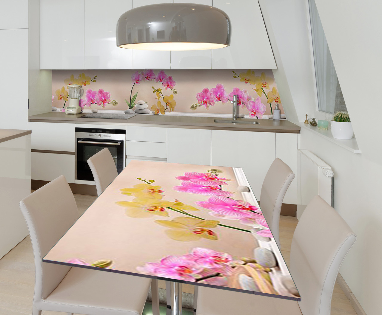 Наклейка 3Д вінілова на стіл Zatarga «Сяючі орхідеї» 650х1200 мм для будинків, квартир, столів, кав'ярень