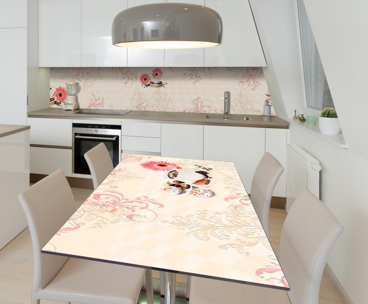Опис Наклейка 3Д вінілова на стіл Zatarga «Гербери та кава» 600х1200 мм для будинків, квартир, столів, кав'ярень.