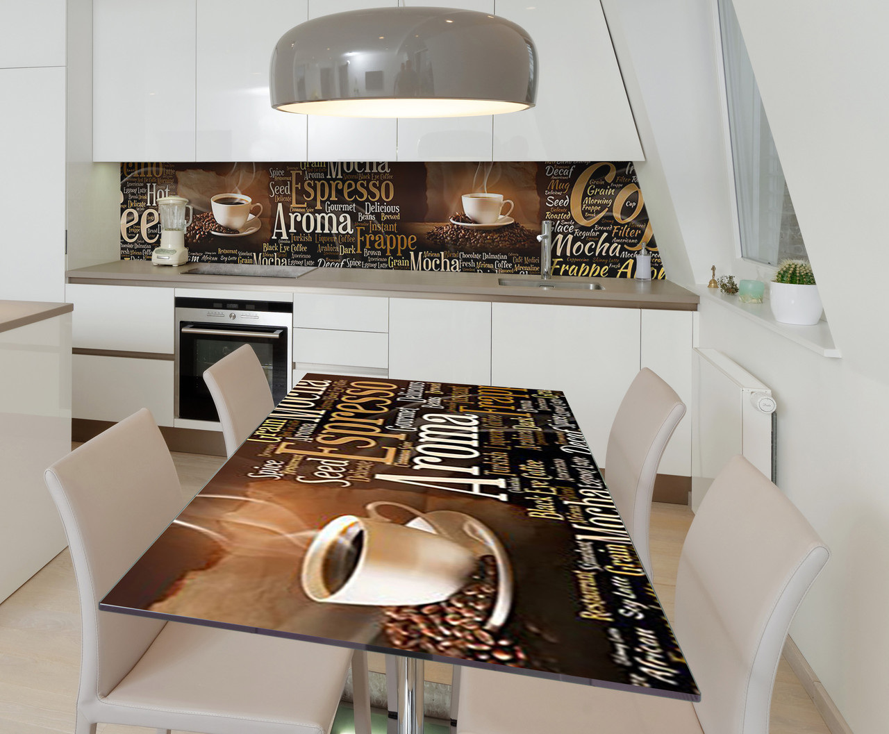 Опис Наклейка 3Д вінілова на стіл Zatarga «Достаток кавових напоїв» 600х1200 мм для будинків, квартир, столів,