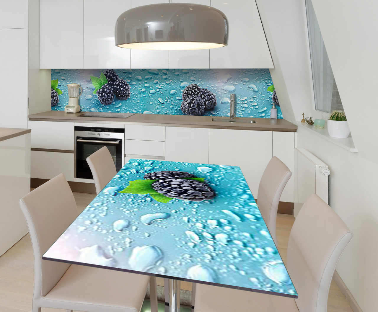 Опис Наклейка 3Д вінілова на стіл Zatarga «Ягоди в краплях» 650х1200 мм для будинків, квартир, столів, кав'ярень
