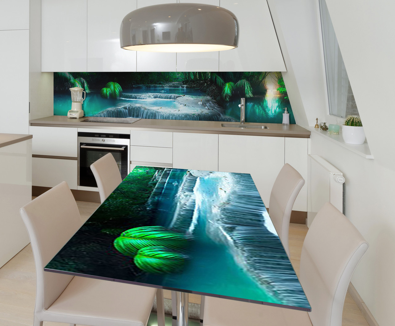 Характеристики товару Наклейка 3Д вінілова на стіл Zatarga «Бірюзові водоспади» 600х1200 мм для будинків, квартир, столів, кав'ярень,