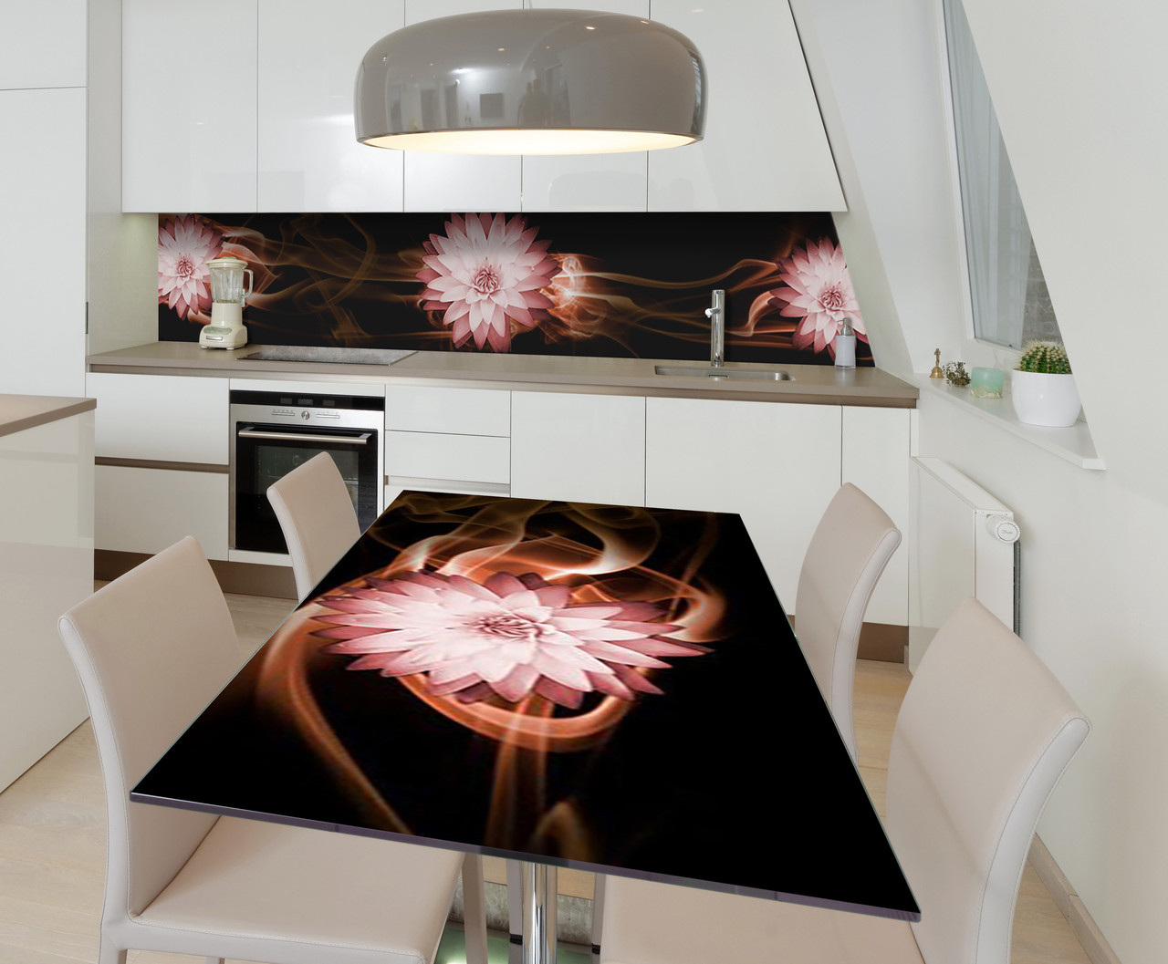 Наклейка 3Д вінілова на стіл Zatarga «Жоржини в диму» 600х1200 мм для будинків, квартир, столів, кав'ярень, кафе