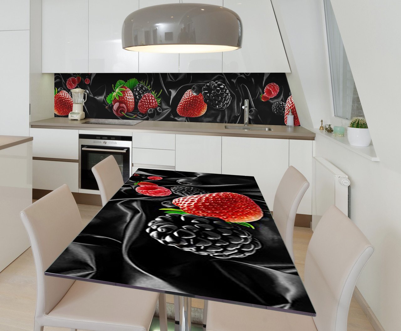 Наклейка 3Д вінілова на стіл Zatarga «Ягоди на чорному» 600х1200 мм для будинків, квартир, столів, кав'ярень.