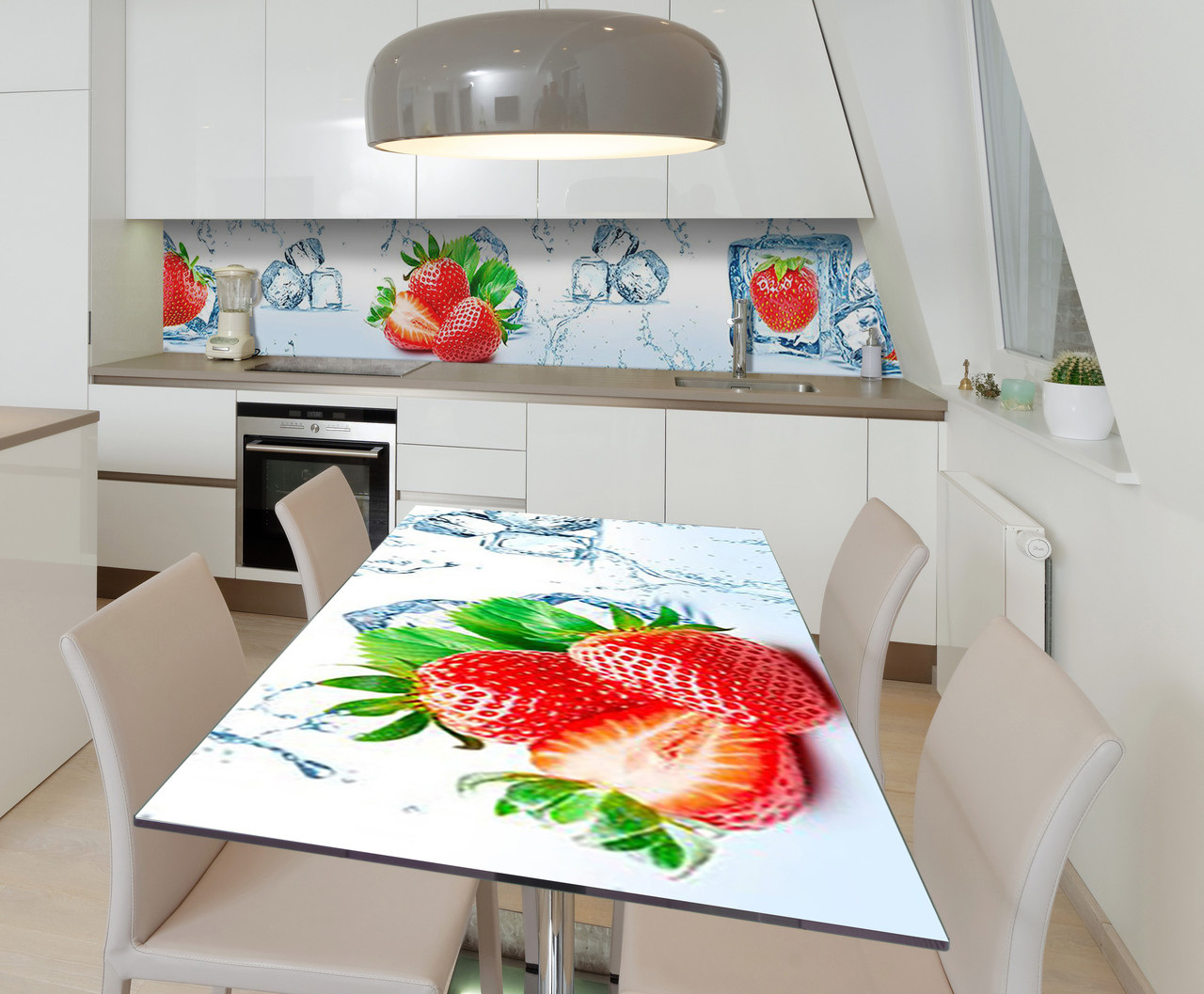 Опис Наклейка 3Д вінілова на стіл Zatarga «Полуниця, що тане» 650х1200 мм для будинків, квартир, столів, кав'ярень, кафе
