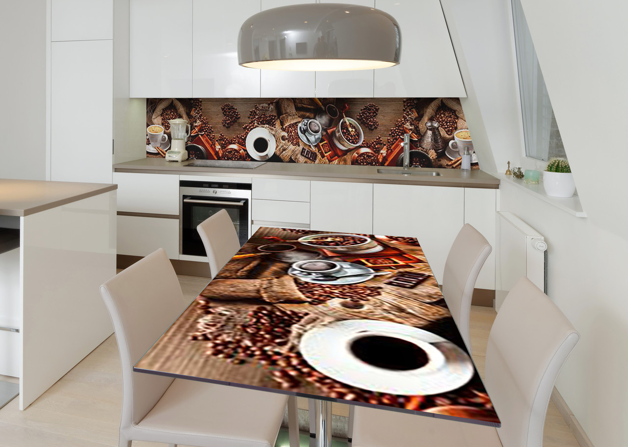 Опис Наклейка 3Д вінілова на стіл Zatarga «Кавові секрети» 600х1200 мм для будинків, квартир, столів, кав'ярень, кафе
