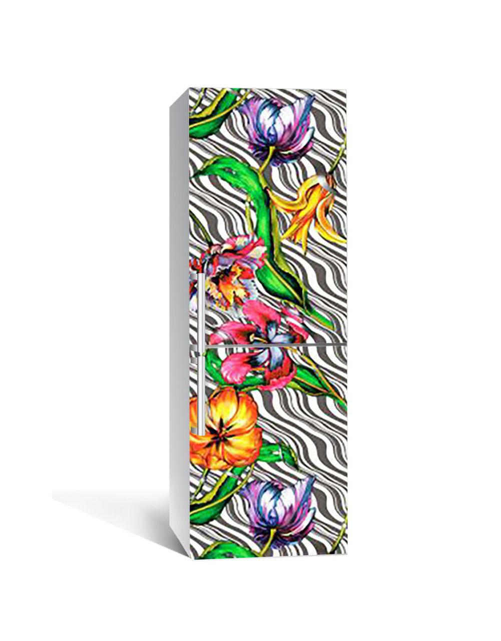 Наклейка на холодильник Zatarga «Жоржини у склі» 650х2000 мм вінілова 3Д наклейка декор на кухню