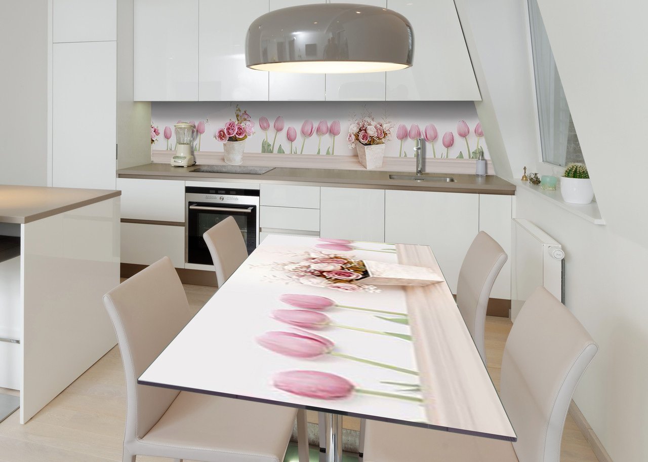 Опис Наклейка 3Д вінілова на стіл Zatarga «Тюльпановий привіт» 650х1200 мм для будинків, квартир, столів, кав'ярень,