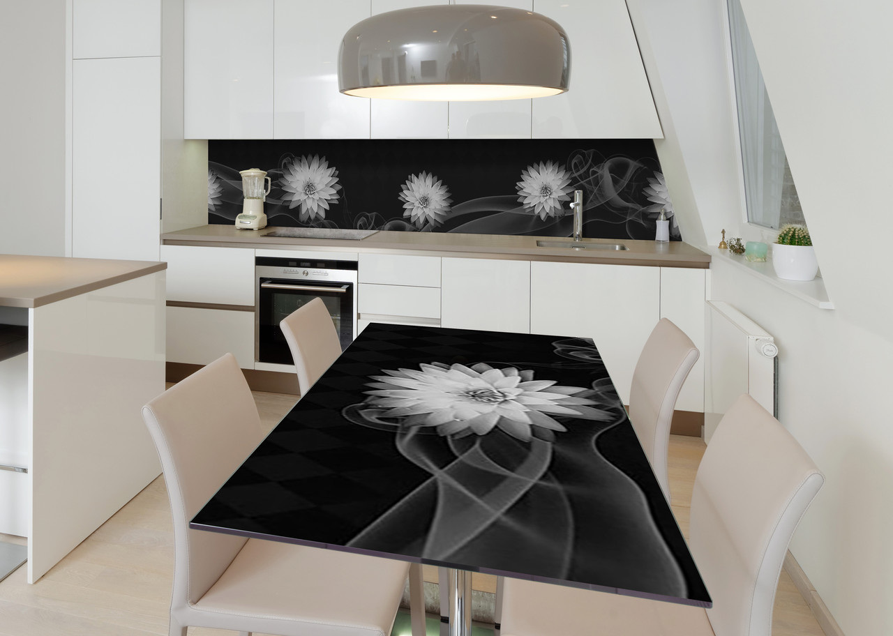 Характеристики товару Наклейка 3Д вінілова на стіл Zatarga «Похмурий жоржин» 650х1200 мм для будинків, квартир, столів, кав'ярень, кафе