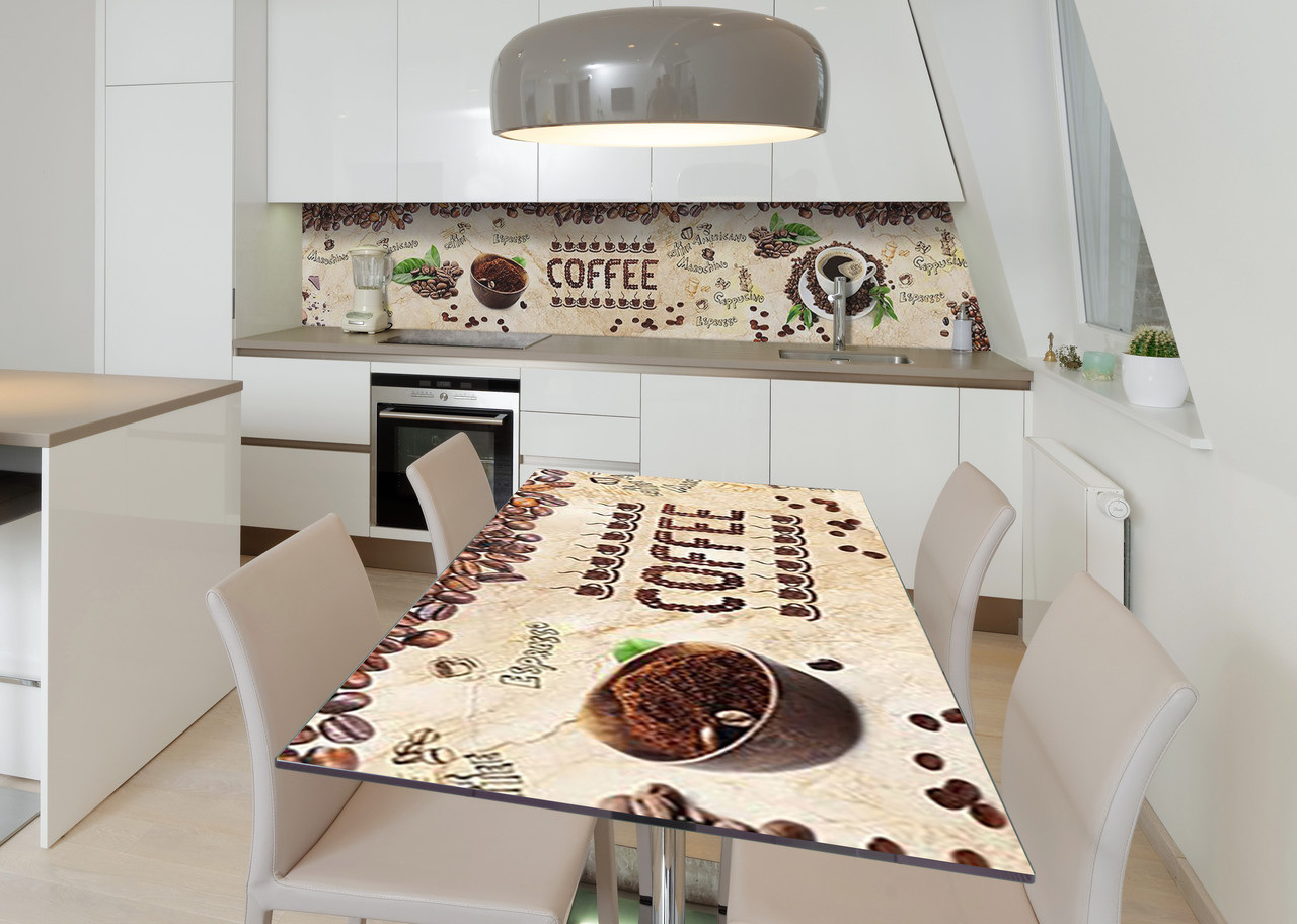 Опис Наклейка 3Д вінілова на стіл Zatarga «Робуста свіжого помелу» 650х1200 мм для будинків, квартир, столів, кав'ярень