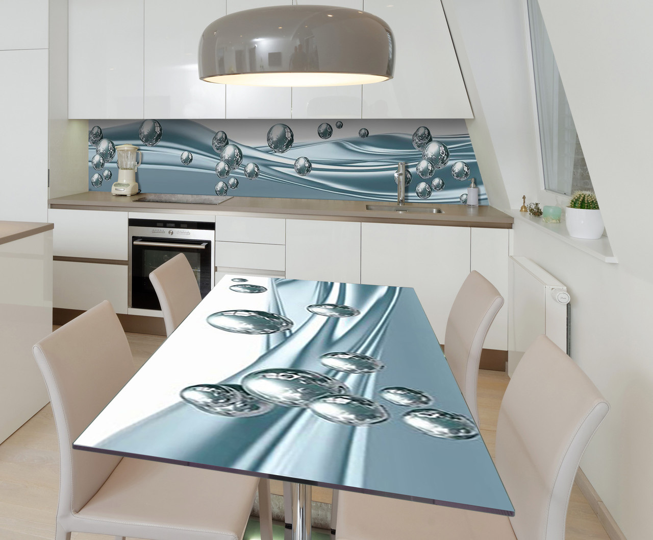 Характеристики товару Наклейка 3Д вінілова на стіл Zatarga «Крапельки ртуті» 650х1200 мм для будинків, квартир, столів, кав'ярень, кафе