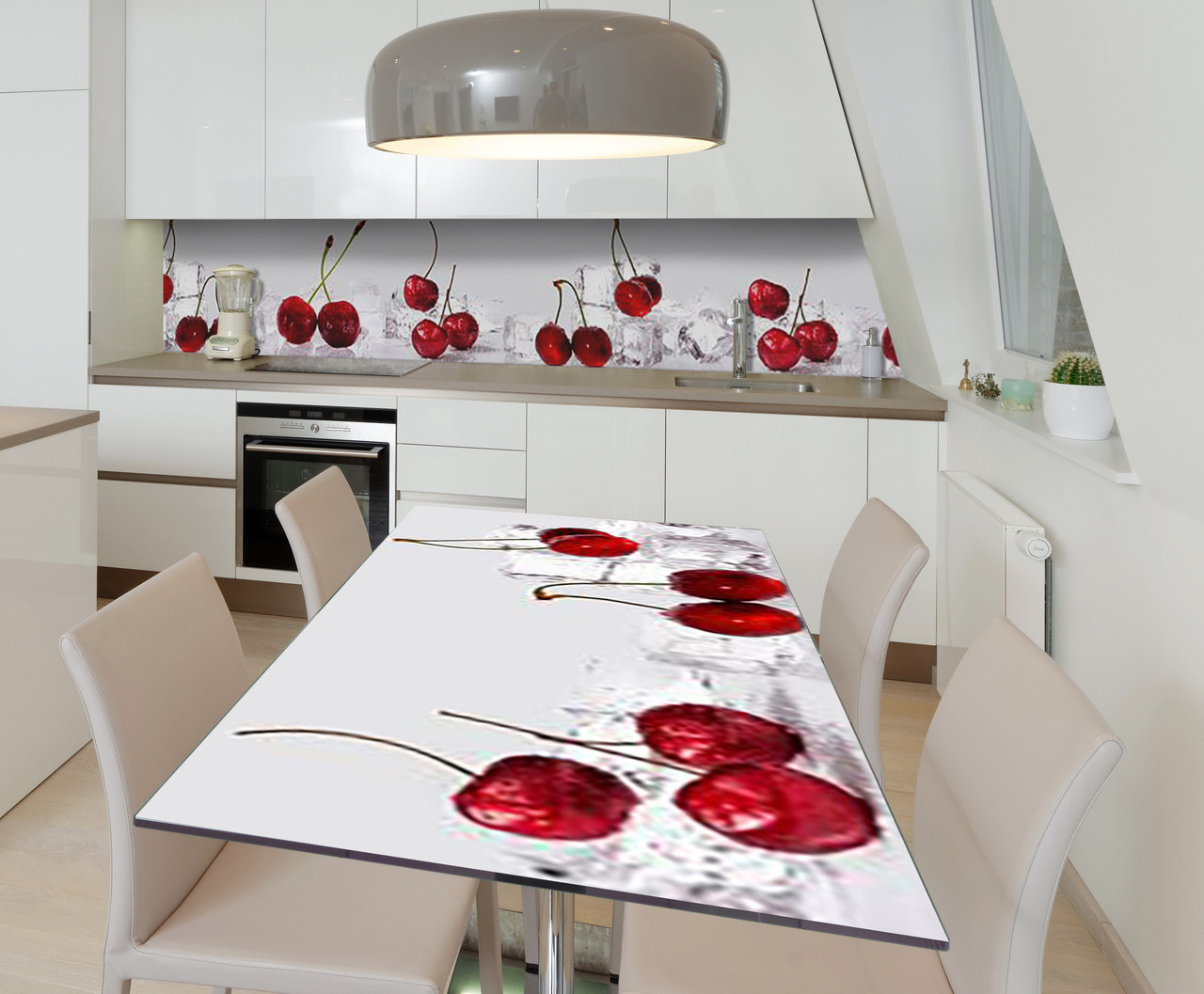 Опис Наклейка 3Д вінілова на стіл Zatarga «Вишні на кубиках льоду» 650х1200 мм для будинків, квартир, столів, кав'ярень,