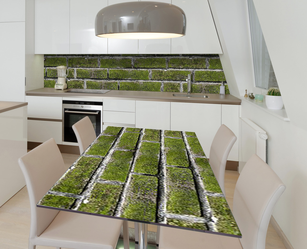 Опис Наклейка 3Д вінілова на стіл Zatarga «Мох на цегляній стіні» 600х1200 мм для будинків, квартир, столів, кав'ярень