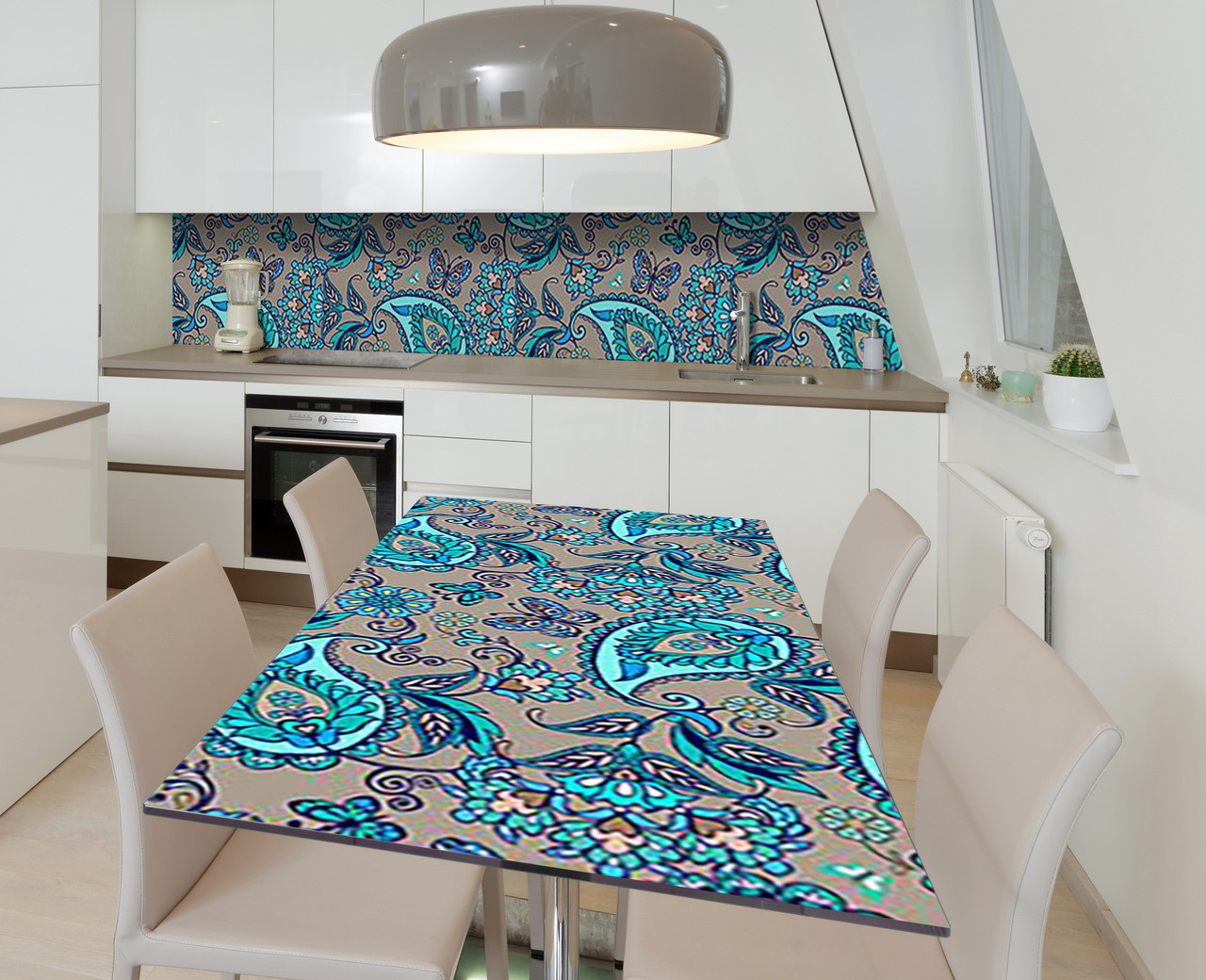 Наклейка 3Д вінілова на стіл Zatarga «Бірюзове полотно» 600х1200 мм для будинків, квартир, столів, кав'ярень.