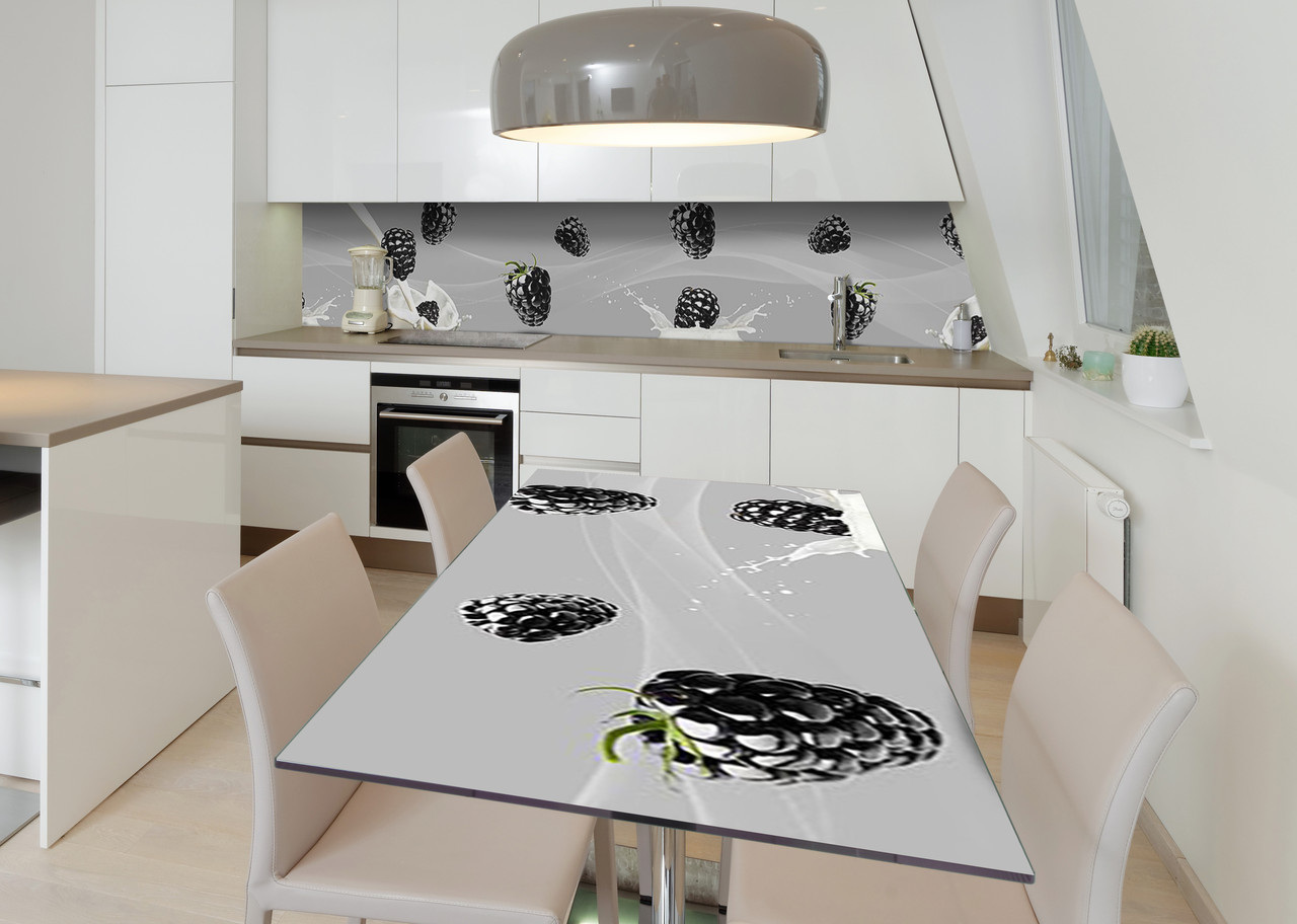 Опис Наклейка 3Д вінілова на стіл Zatarga «Ожина в молоці» 600х1200 мм для будинків, квартир, столів, кав'ярень, кафе