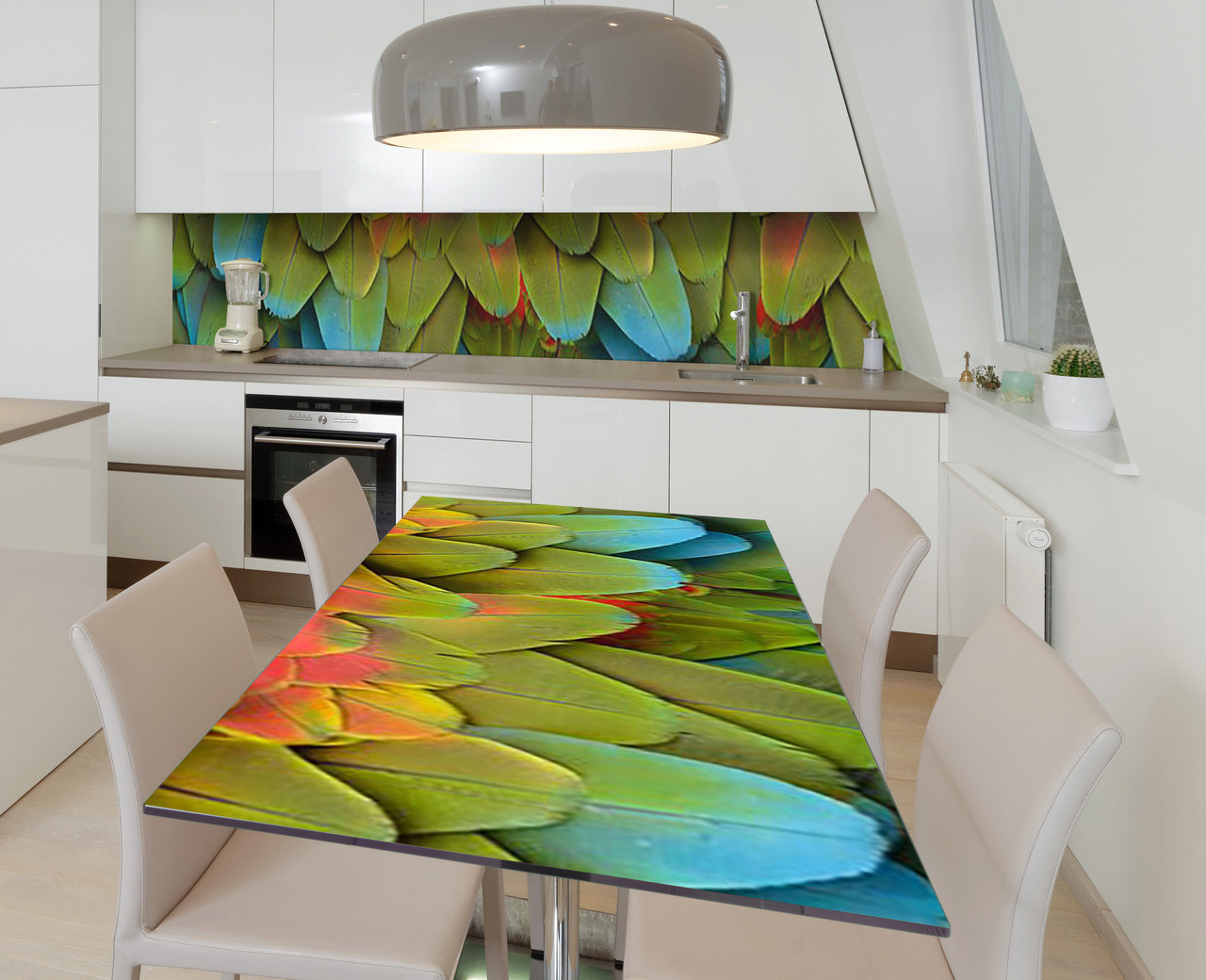 Наклейка 3Д вінілова на стіл Zatarga «Райдужне пір'я» 650х1200 мм для будинків, квартир, столів, кав'ярень, кафе