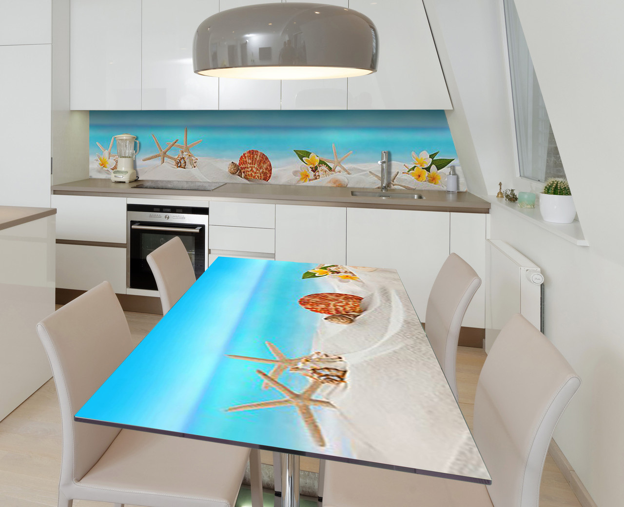 Опис Наклейка 3Д вінілова на стіл Zatarga «Морські скарби» 600х1200 мм для будинків, квартир, столів, кав'ярень.