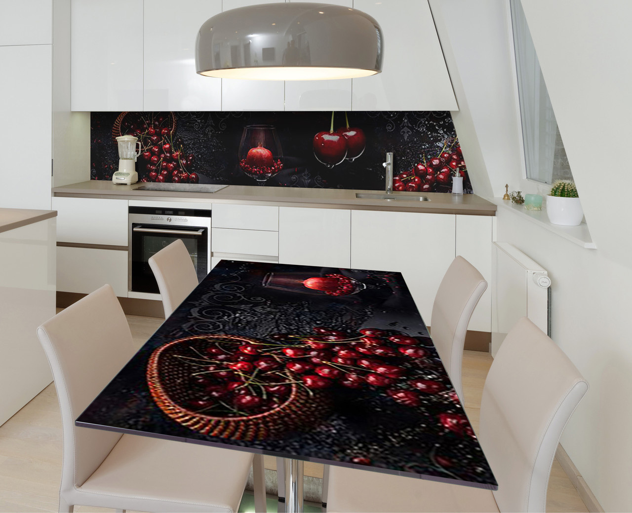 Опис Наклейка 3Д вінілова на стіл Zatarga «Вишневий розсип» 600х1200 мм для будинків, квартир, столів, кав'ярень, кафе