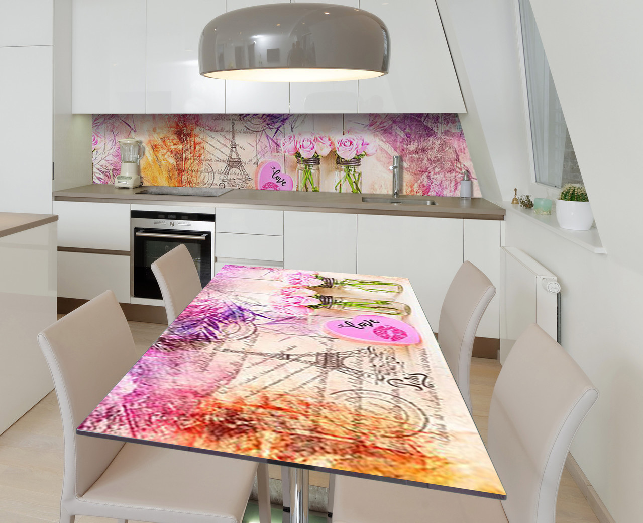 Характеристики товару Наклейка 3Д вінілова на стіл Zatarga «Французький поцілунок» 650х1200 мм для будинків, квартир, столів, кав'ярень,