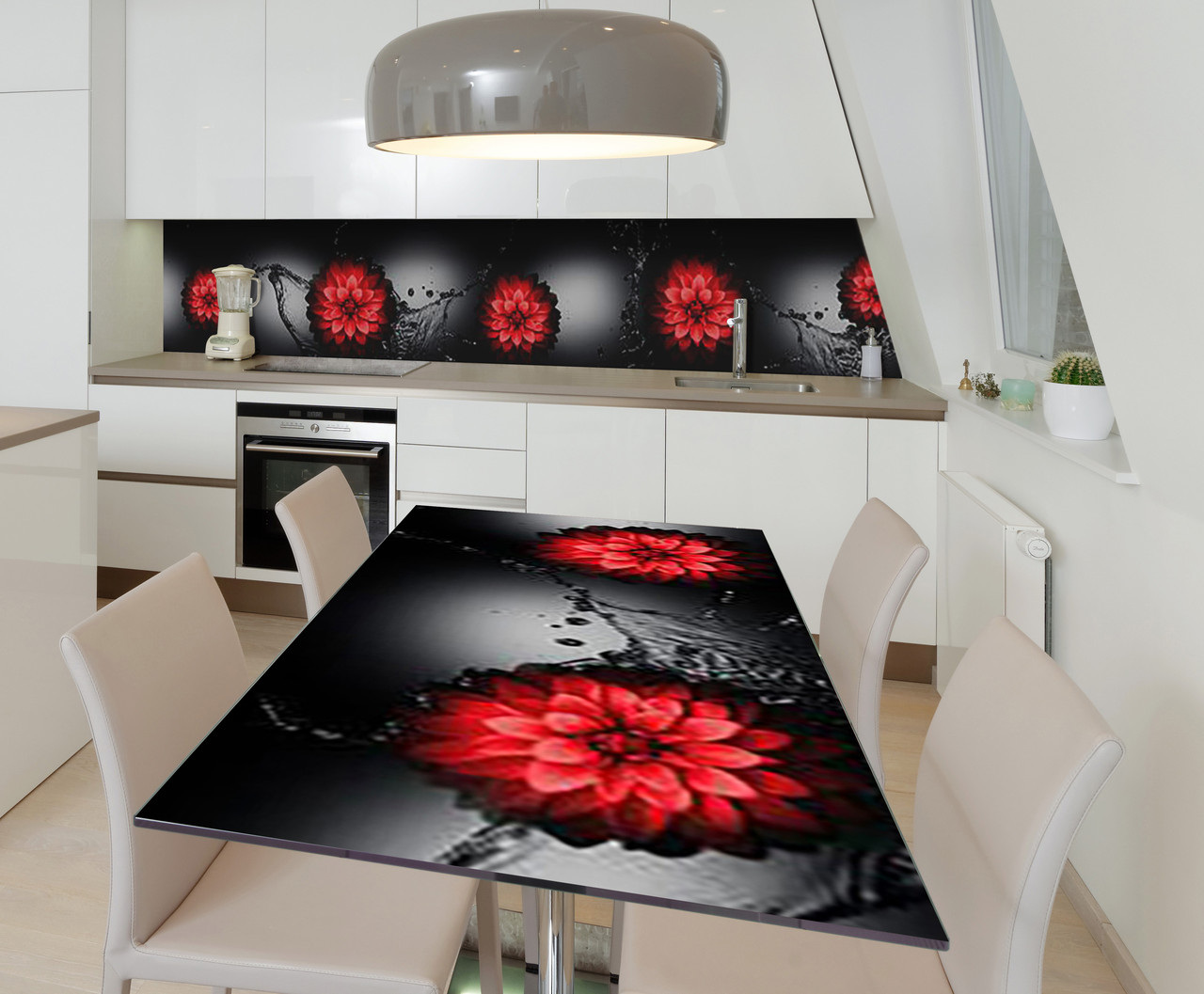 Опис Наклейка 3Д вінілова на стіл Zatarga «Жоржини у воді» 600х1200 мм для будинків, квартир, столів, кав'ярень, кафе