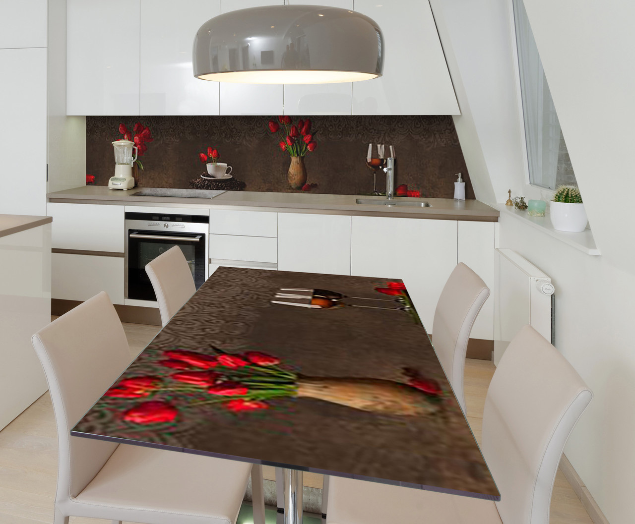 Опис Наклейка 3Д вінілова на стіл Zatarga «Тюльпани на сніданок» 600х1200 мм для будинків, квартир, столів, кав'ярень