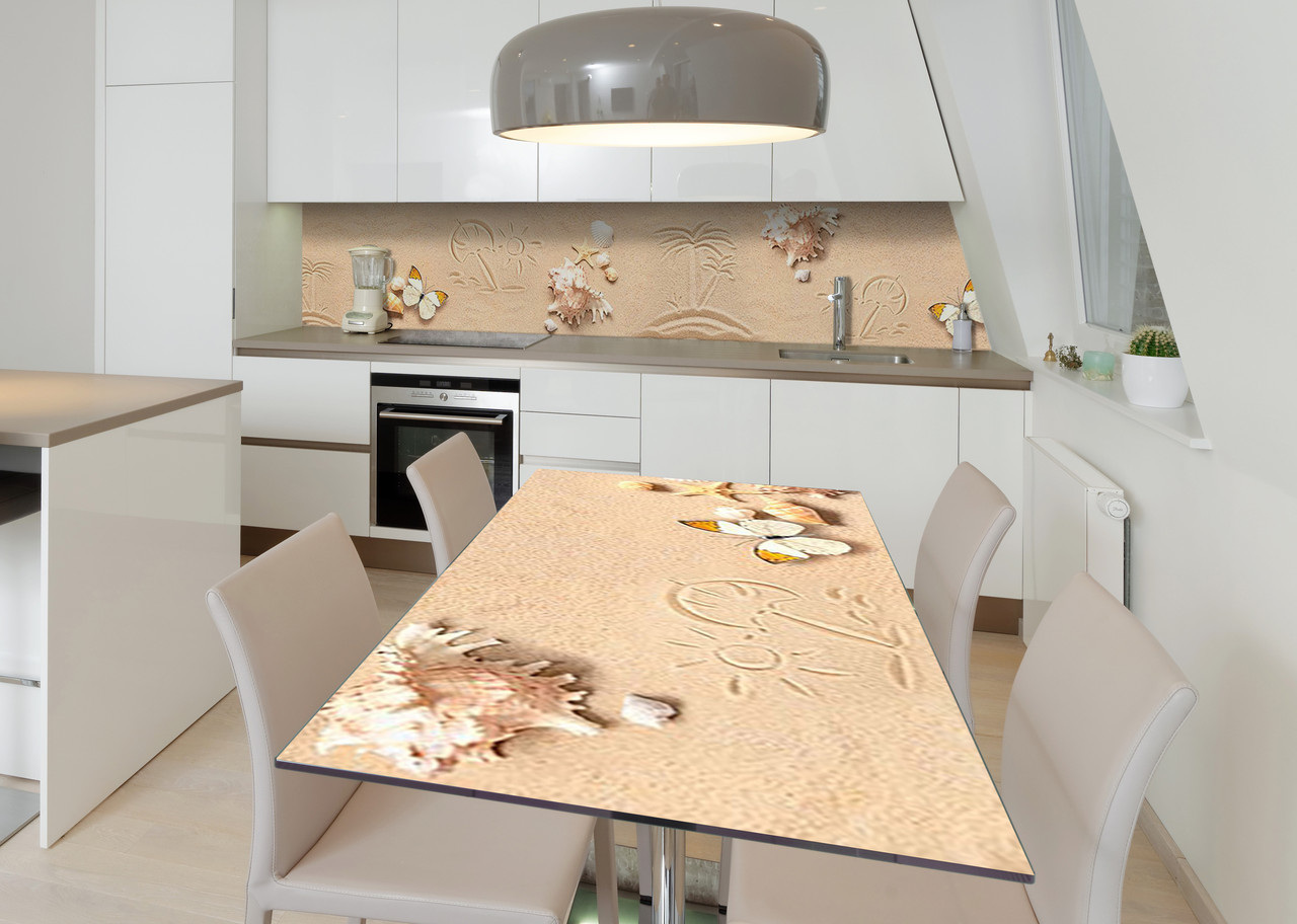 Наклейка 3Д вінілова на стіл Zatarga «Малюнки на піску» 650х1200 мм для будинків, квартир, столів, кав'ярень, кафе
