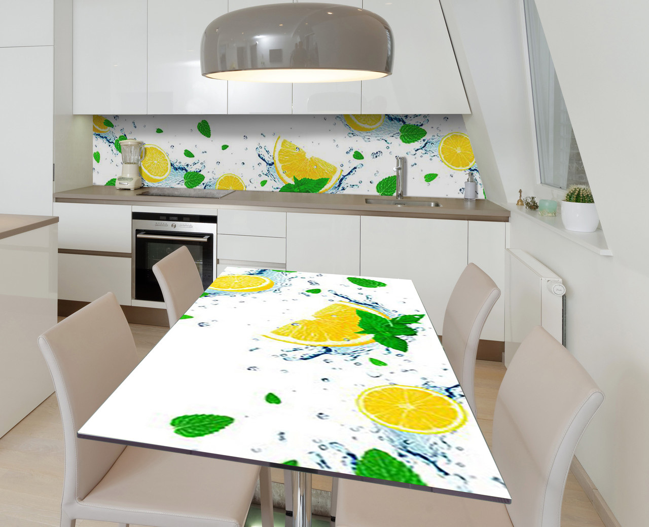 Опис Наклейка 3Д вінілова на стіл Zatarga «Цитруси з м'ятою» 600х1200 мм для будинків, квартир, столів, кав'ярень, кафе