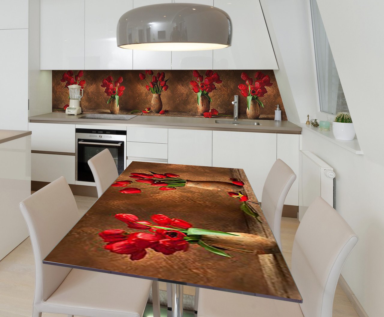 Наклейка 3Д вінілова на стіл Zatarga «Букети червоних тюльпанів» 650х1200 мм (Z182175/1st)
