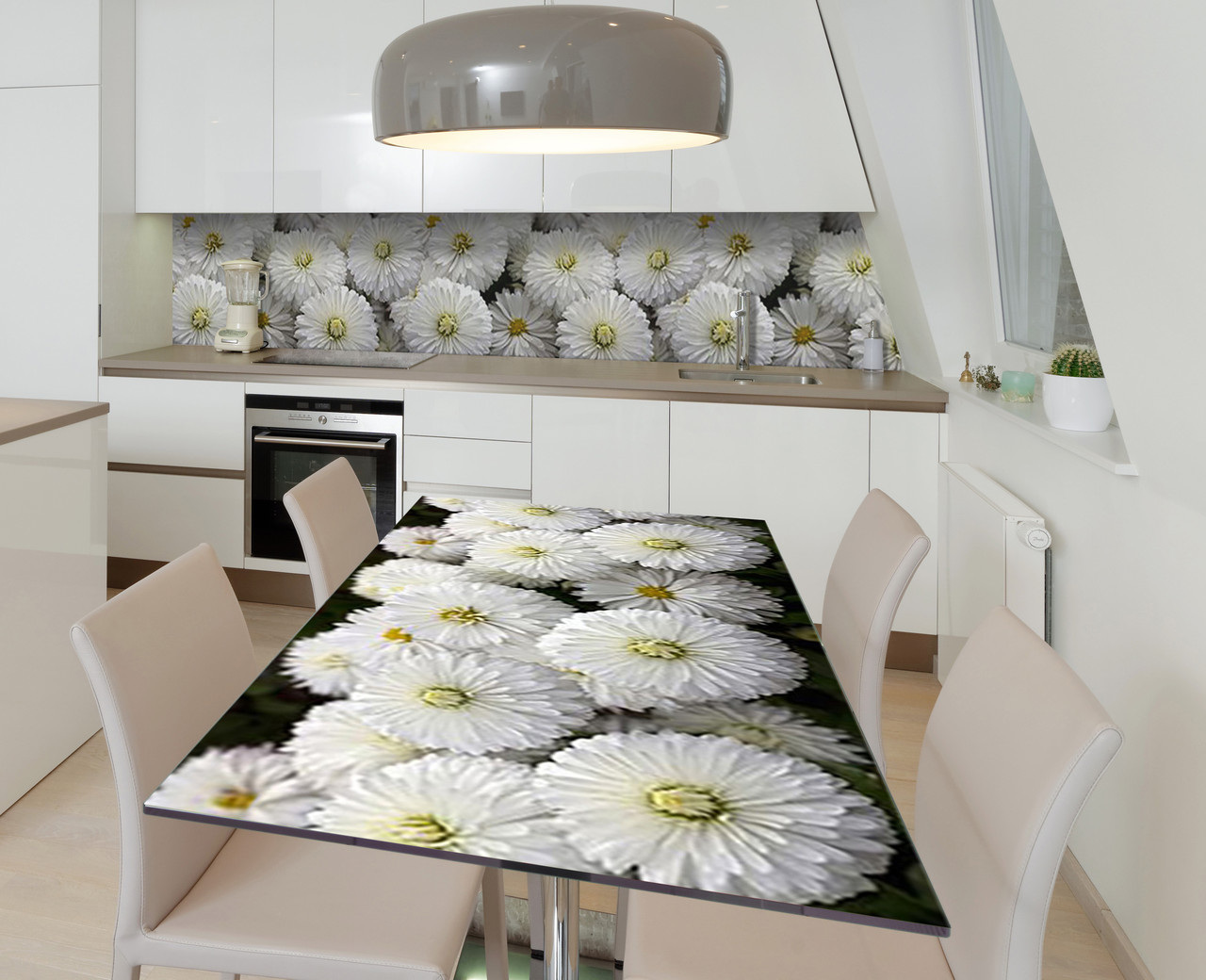 Опис Наклейка 3Д вінілова на стіл Zatarga «Білі хризантеми» 650х1200 мм (Z183391/1st)