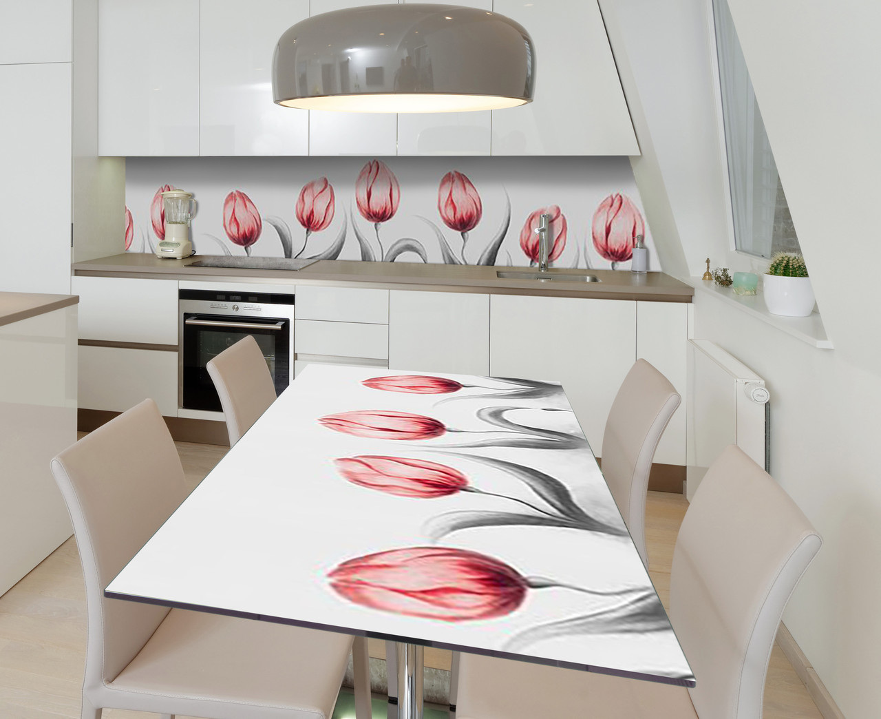 Опис Наклейка 3Д вінілова на стіл Zatarga «Намальовані тюльпани» 600х1200 мм для будинків, квартир, столів, кофейн
