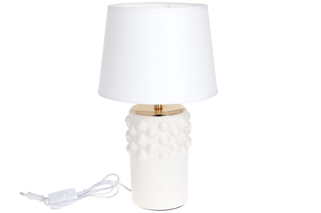 Лампа настільна 42 см з керамічною основою та тканинним абажуром, колір - білий.