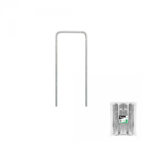 Шпилька подвійна у формі літери "П" для кріплення покривних матеріалів (агроволокно, агротканина, геотекстиль, плівка тощо) до ґрунту. Виготовлена з оцинкованої сталі. Міцна та надійна фіксація матеріалу.Довжина: 15 см